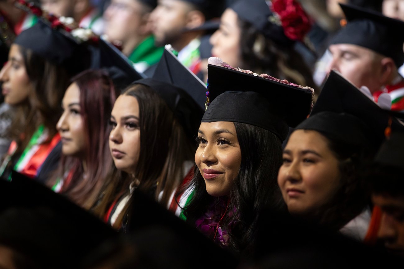 Graduating students are seen at the Fresno State Chicano/Latino Commencement Celebration in the Save Mart Center in Fresno on May 18, 2024. The commencement ceremony is the largest Latino graduation ceremony in the nation. |