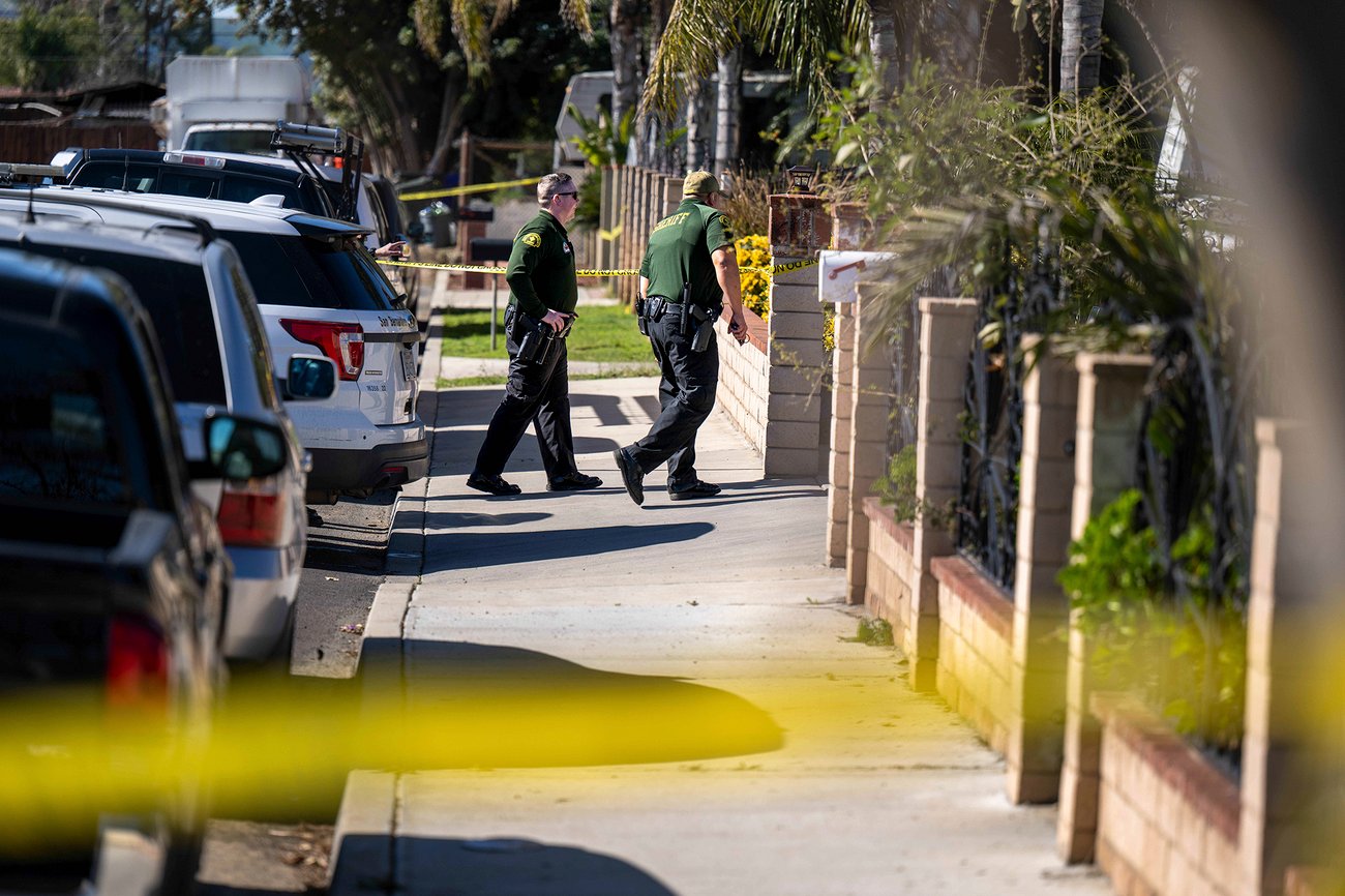 San Bernardino County sheriff's investigators walk through a crime scene where three people were found dead in a house in unincorporated San Bernardino County near Montclair on Jan. 31, 2023. Photo by Watchara Phomicinda, MediaNews Group/The Press-Enterprise via Getty Images |