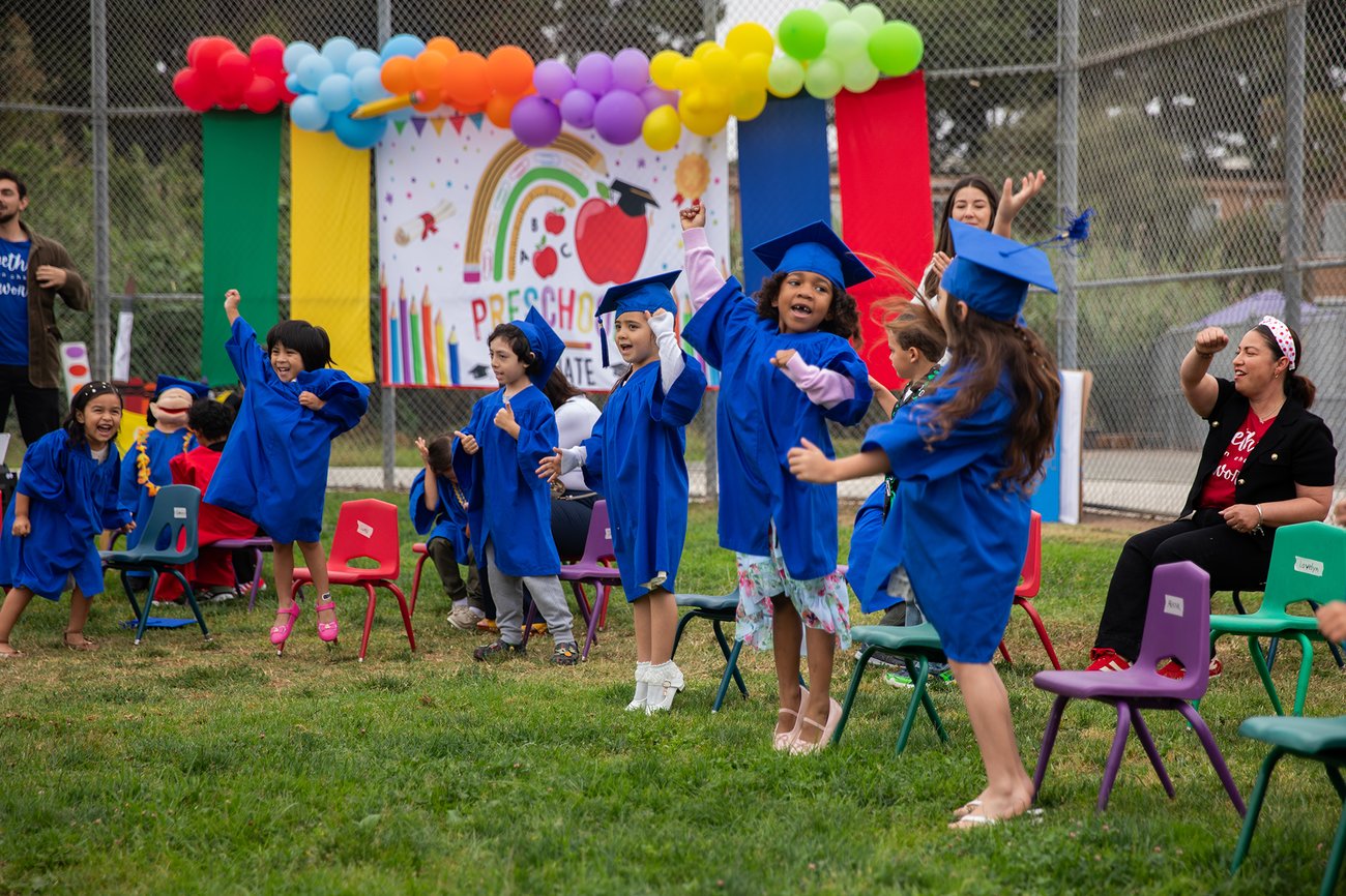 Students perform a song during a graduation ceremony on June 11, 2025 at Mi Escuelita, a preschool in San Diego dedicated to students who have experienced family trauma, such as domestic violence.