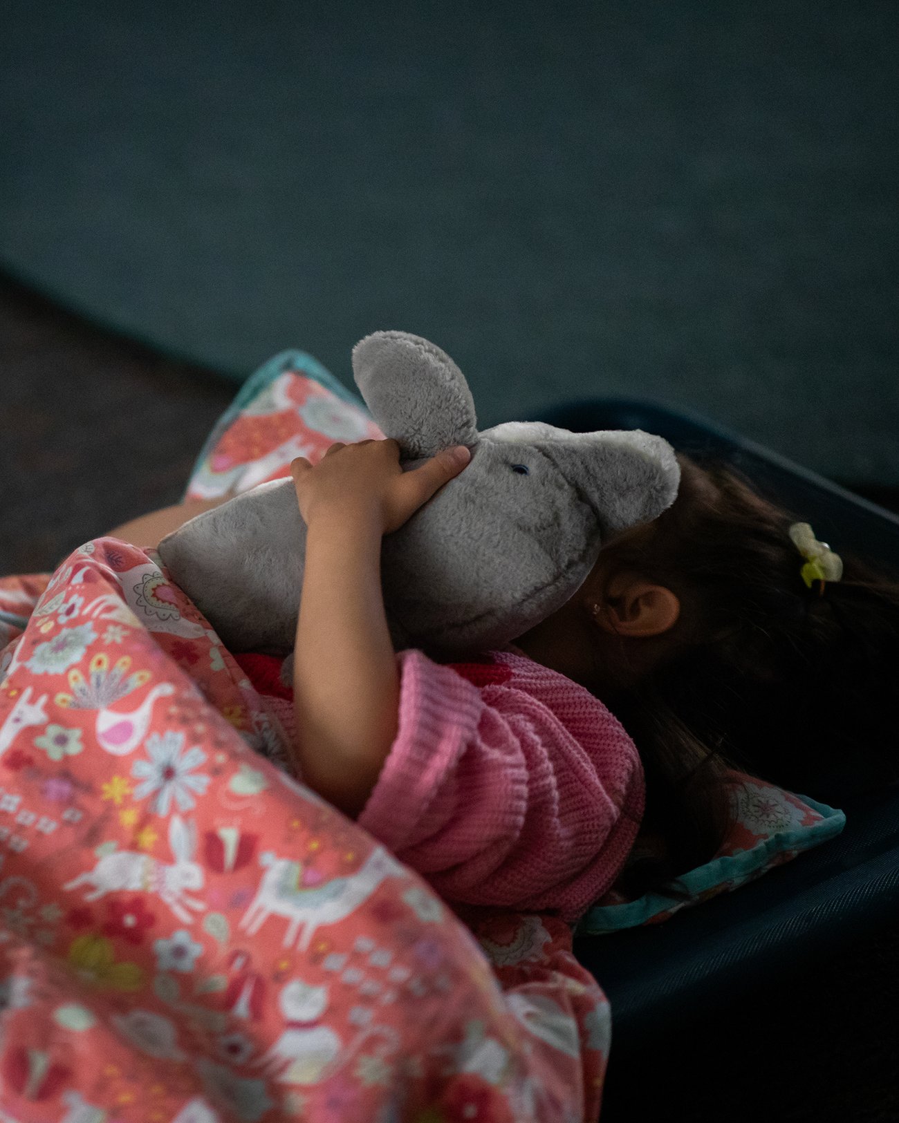 Students sleep during nap time at Mi Escuelita preschool in San Diego on May 5, 2025. The school offers on-site therapy and social-emotional learning to help students heal from trauma. Nap time can be particularly challenging, as many children remain on high alert and struggle to rest.