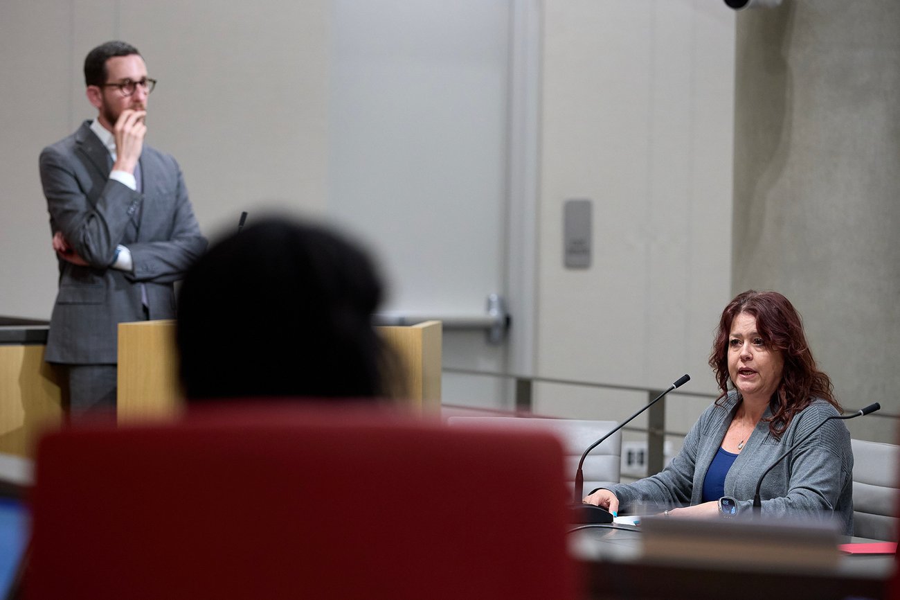 Christine Dougherty, right, testified about addiction treatment in Sacramento on April 9, 2025. Photo by Fred Greaves for CalMatters |