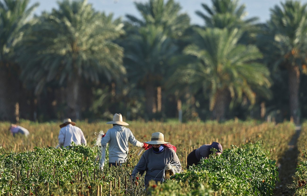 Farmworkers working in a field in the morning heat near Coachella on July 3, 2024. Photo by Mario Tama, Getty |