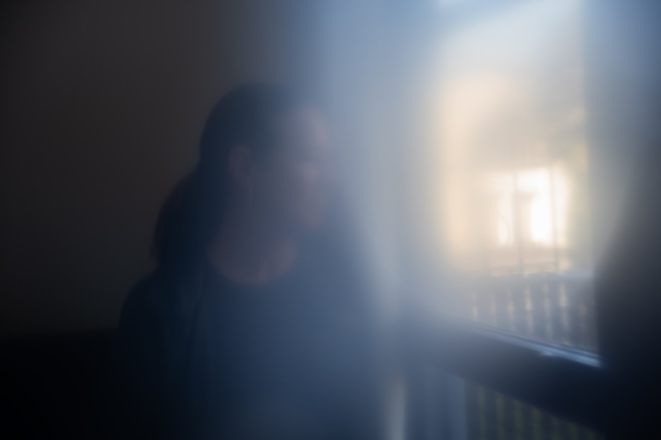 C.M., who prefers to not use her name, sits in her bedroom at a transitional home provided through CARE Court after receiving treatment for schizophrenia in Oakland on Dec. 1, 2025. She now lives in a single-occupancy room and is beginning classes at Chabot College in January. |