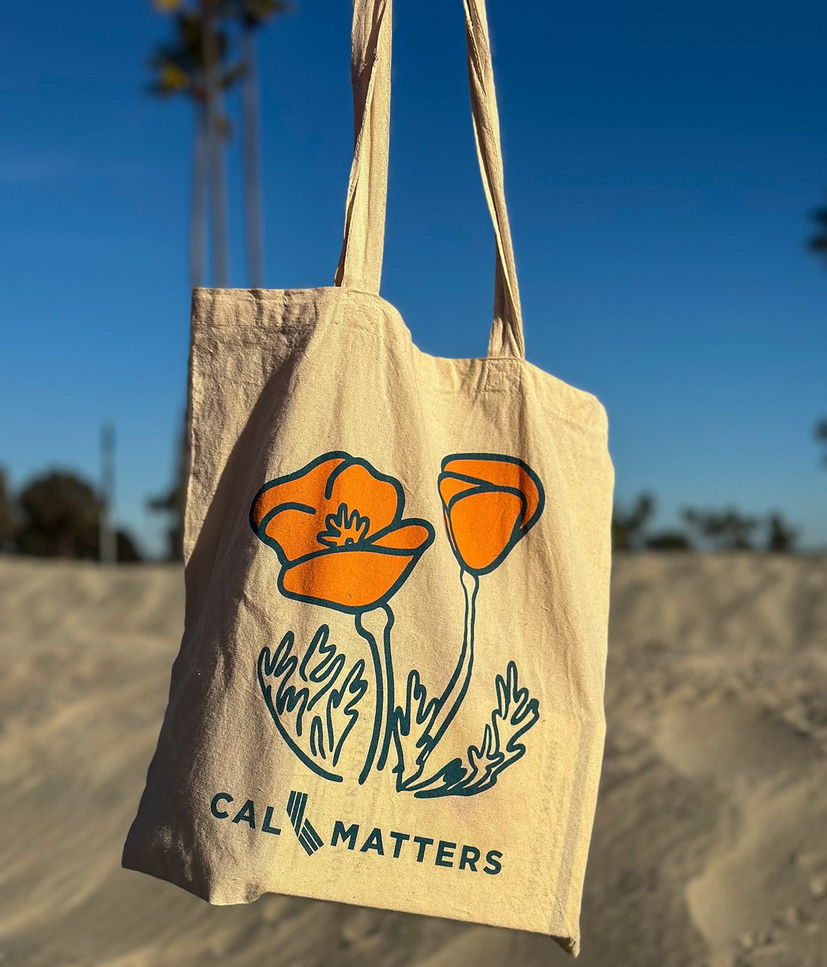 Whatever you want to carry, the CalMatters tote is ready for you to show your California pride.