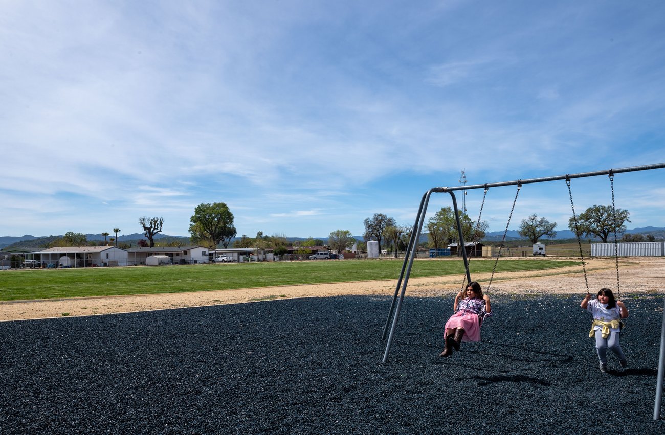 Paloma Segura, second-grader at San Antonio Elementary School swings during recess. “It was good because I missed going to school,” Paloma said about returning to in-person school in our 2022 series.