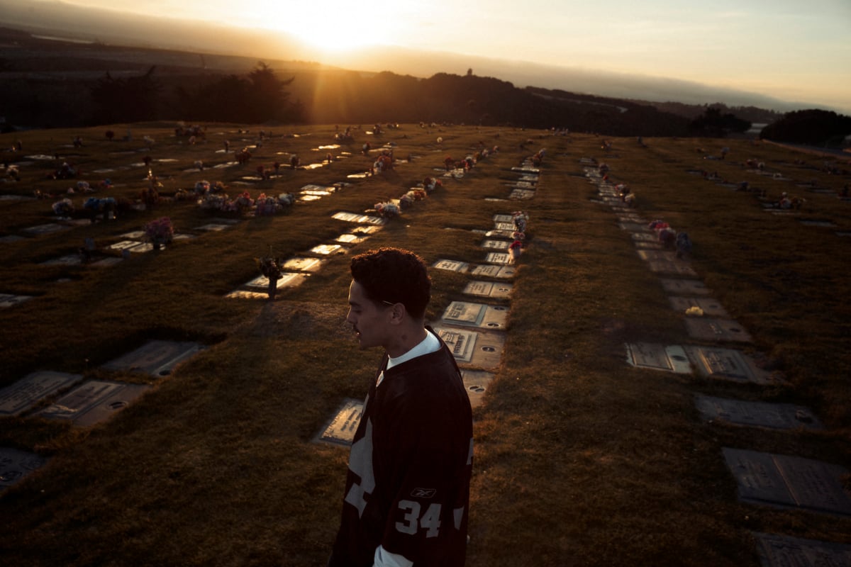 Kain Castro visits the graves of several of his friends upon his release from prison where he served 4 years on gang enhanced charges since he was 14. Castro had several friends who were buried at the cemetery while he was serving time.