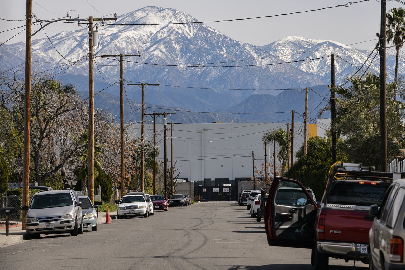 A large warehouse at the end of a cul-de-sac in a residential neighborhood in San Bernardino on Feb. 16, 2023. Pablo Unzueta for CalMatters |